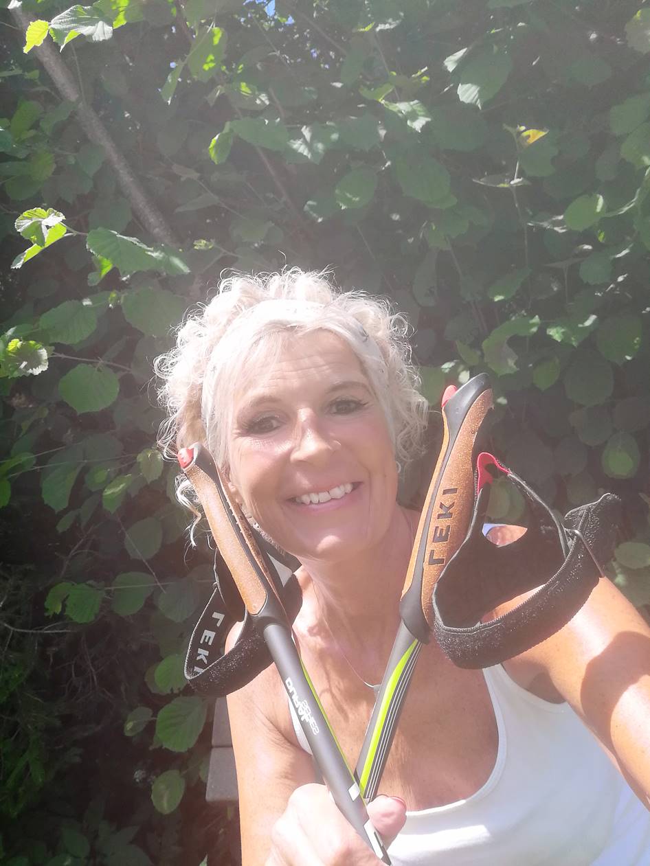 Da ich nach dem Koma auch das Laufen, die Selbständigkeit und eigentlich alles wieder lernen musste, zunächst im Rollstuhl saß, danach am Rollator ging, war es einfach toll irgendwann das Walken zu probieren. Da ich auch unter starkem Schwindel litt, ließ ich bei allen diesen Erfolgserlebnissen immer meine Familie und Freunde über meinen WhatsApp Status daran teilhaben.