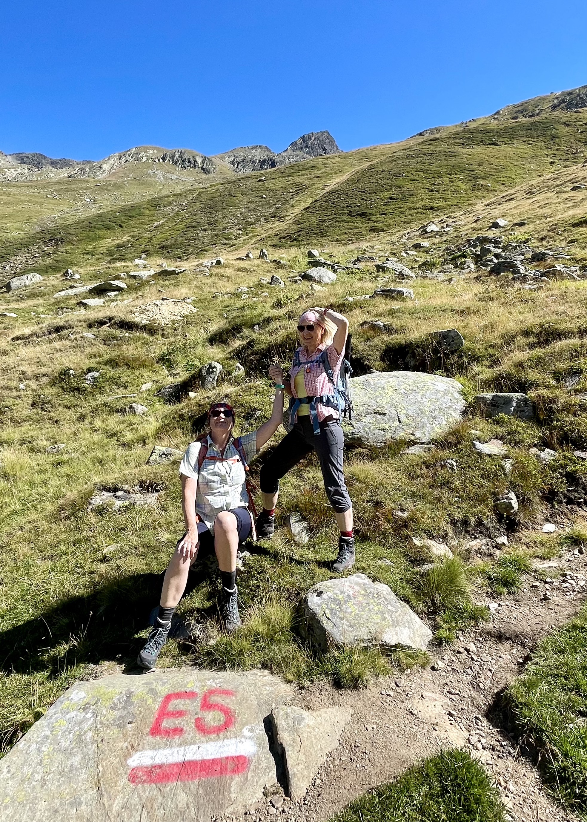 Unsere Tour ging nur teilweise über den Europäischen Fernwanderweges Nr. 5. Oft liefen wir parallel zu dieser Hauptroute auf stillen Pfaden über die Alpen. Es verwöhnten uns unfassbar herrliche Wanderungen und Passübergänge am Alpenhauptkamm bis nach Meran mit seinem mediterranen Flair.