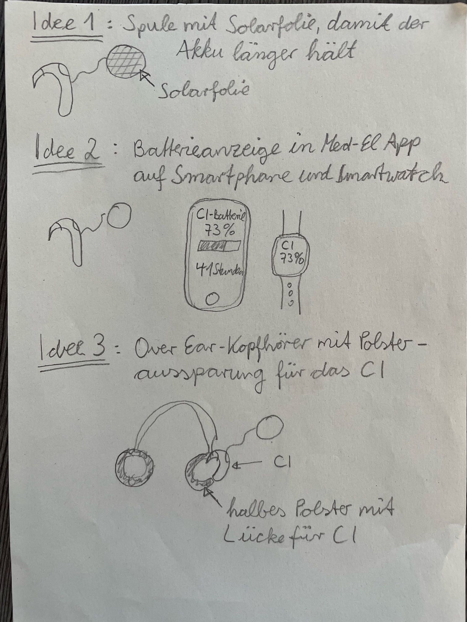 - Ebenso wünscht sie sich eine Verlängerung der Akkulaufzeit über eine Solarabdeckung auf der Spule des CIs.
