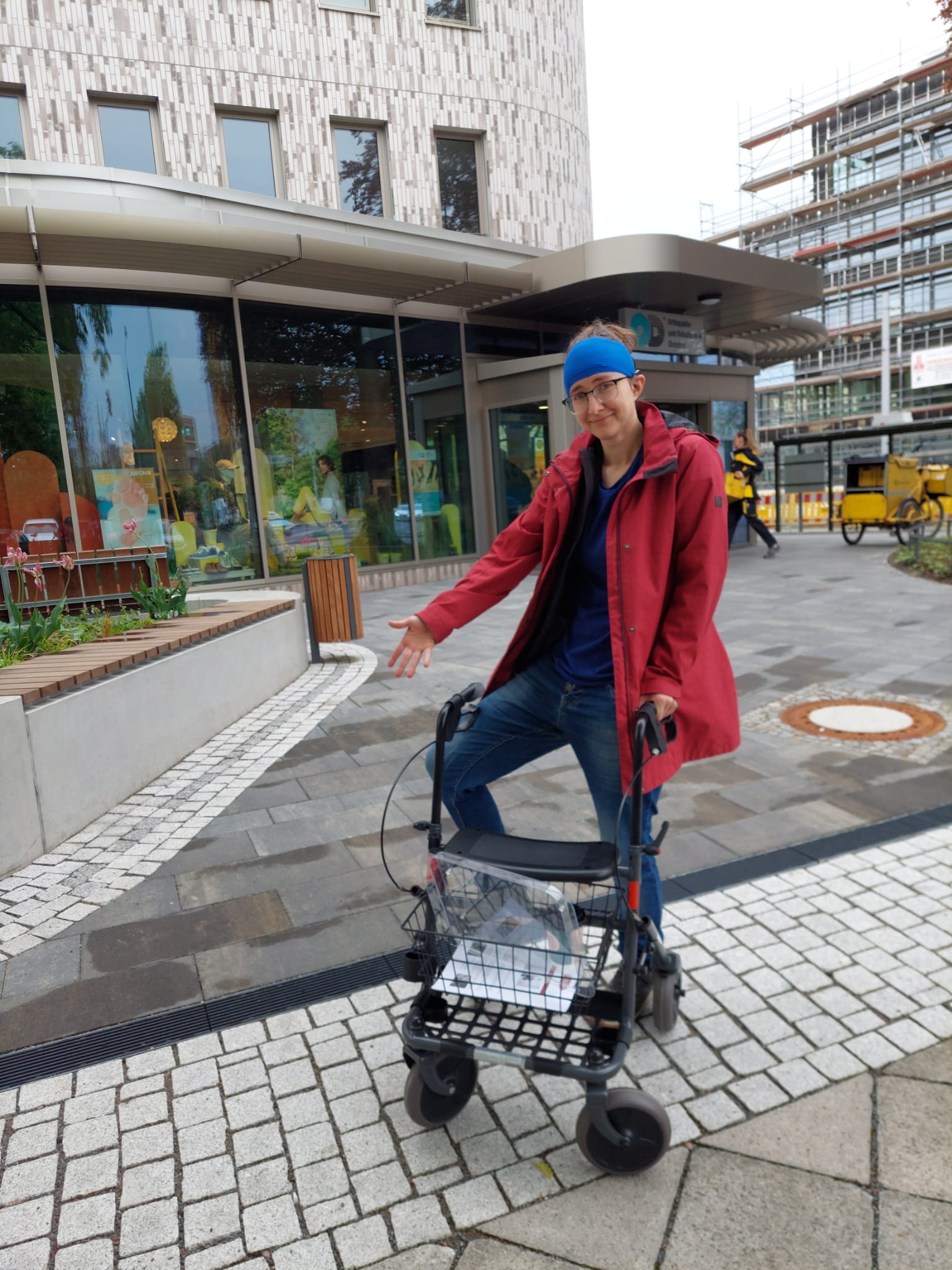 Dank der Vereinbarung gab ich mir (mit Unterstützung meiner Liebsten) die größtmögliche Mühe und forderte mich jeden Tag heraus. Der Rollator gab mir sehr viel Sicherheit und ich erntete einige verwunderte Blicke von anderen Menschen. Nach etwa drei Monaten bestand ich die selbst auferlegte Gleichgewichtsprüfung – sogar mit einer Runde Einradfahren! Das war für mich ein großer Erfolg und ein Beweis dafür, dass ich mit Durchhaltevermögen meine Ziele erreichen kann.
