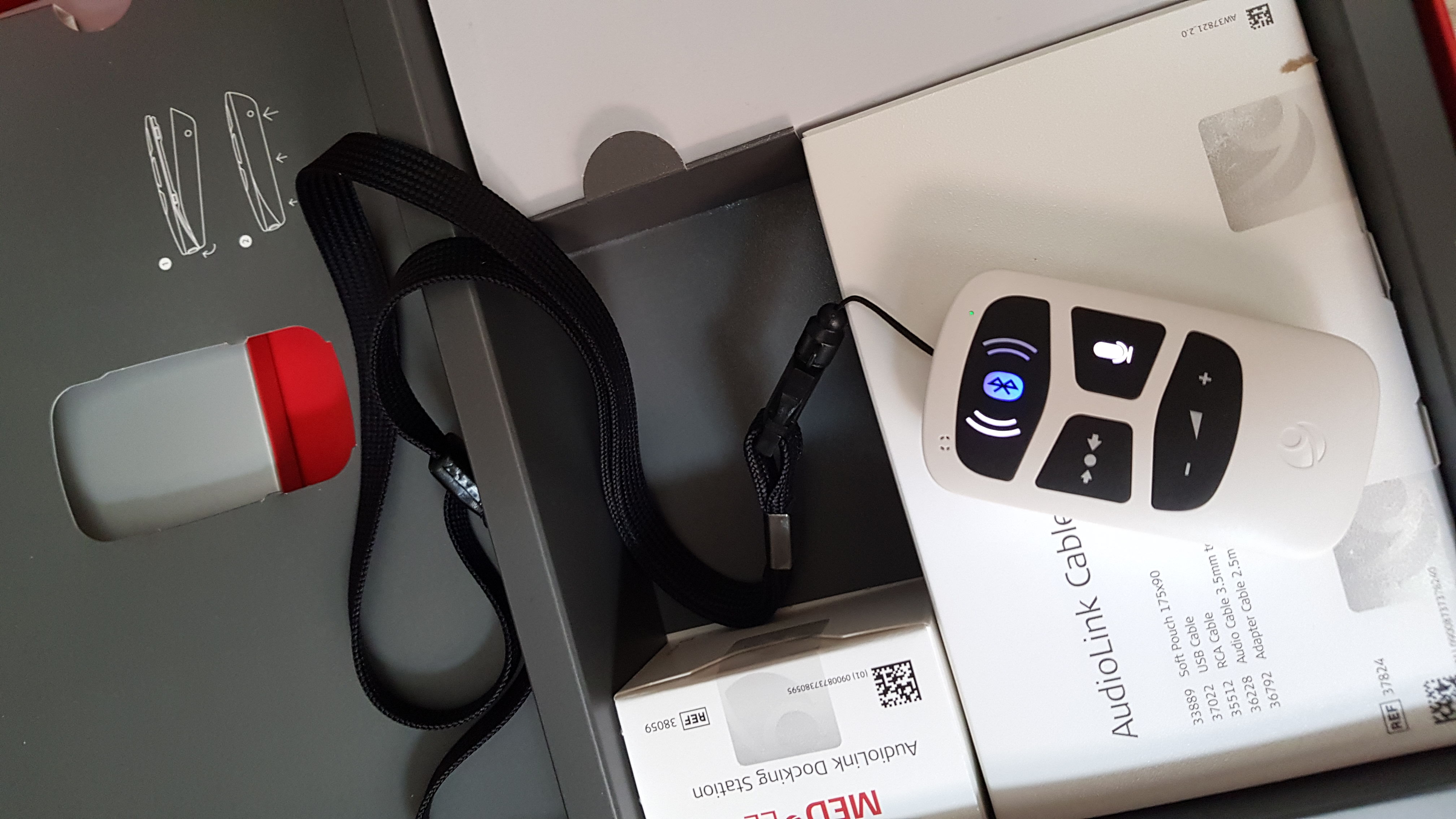 In der Zwischenzeit durfte ich bereits den Audiolink von MedEl ausprobieren, den ich Ende August geliefert bekam. Ich packte ihn gleich aus. Wie es bei MedEl üblich ist, war dieser sehr schön verpackt und sehr stabil. Ich schaltete ihn an, es war der Wahnsinn.